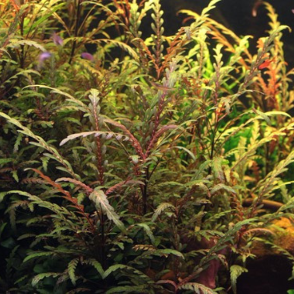 This interesting variety from India has some highly unusual attributes. It has been commercially available for only a few years and is finding more and more use in fascinating landscapes. Not only are the leaves a very attractive rust brown to olive green, they also have a lovely feathered shape. Combine with simple plant shapes to really highlight the ornamental leaves. These plants also have the ability to grow on rocks and roots, which is completely atypical for stem plants.