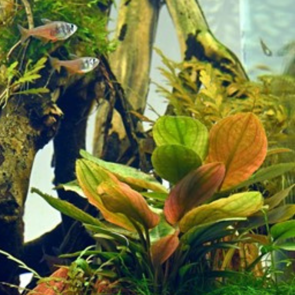 The genus Lagenandra is very closely related to the Cryptocorynes and colonises similar habitats. Lagenandra meeboldii is a very varied species and the variety ‘Red’ is a wonderfully colored plant for the midground. Until now most species in the genus Lagenandra were unsuitable for aquariums, however this new plant from India does impressively well in an underwater landscape. Here they also form a strong rhizome like the Anubias, but they should be planted into the substrate. With its striking color this Indian beauty makes a great feature in a plant aquarium.