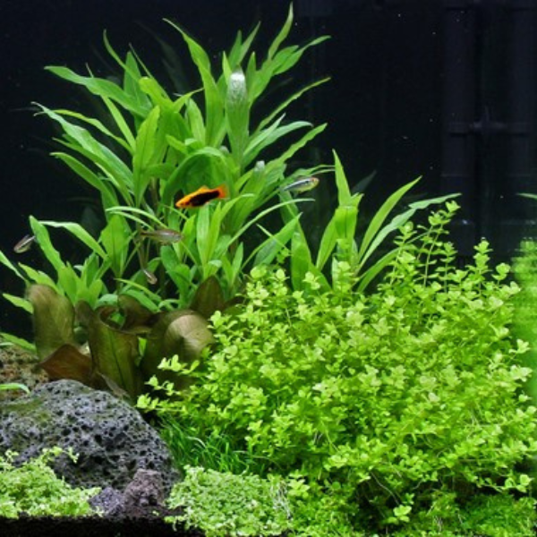 Micranthemum umbrosum is an exquisite aquarium plant originally from the US. Its round leaves grow to around 0.5 cm and are a brilliant light green. Like most light-hungry plants it does not tolerate high temperatures. As with Hemianthus glomeratus, these plants are easy to keep in shape with sharp scissors. Baby Tears is suitable for Nano Cubes, particularly if you are running your miniature aquarium without a heater.