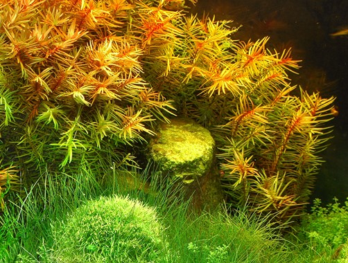 Didiplis diandra is a particularly colorful stem plant from the eastern part of the USA. The submerged needle-like leaflets are arranged crosswise in opposition to each other, which gives the plant a very delicate look. Provide for good lighting and sufficient fertilization to ensure wonderful colors in all shades of orange and red. A good supply of CO2 promotes considerably better and faster growth. In order to support the colorful growth, please also supply the plants with iron and micronutrients. Didiplis beautifully contrasts with purely green stem plants such as Rotala spec. Green or when added to other colorful plants.