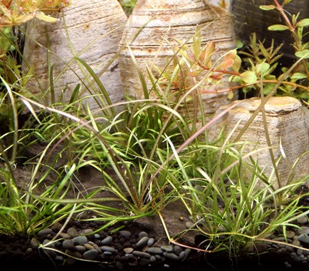 In the past, this grass-like plant was better known as „Echinodorus tenellus“. It has been one of the most popular foreground plants for many decades and can be described as a ‘classic’. In contrast to the purely green growth form ‚parvulum‘, with good lighting the narrow-leaved growth form becomes violet reddish – a nice contrast to bright green cushion forming plants such as Micranthemum tweediei. Strongly cut back, Helanthium tenellum ´Red´ forms a dense „grass carpet“. In aquascaping individual shoots set fine accents in a landscape.