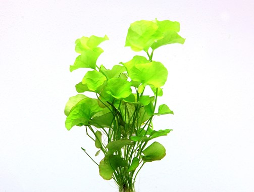 In contrast to many other Nymphoides species with floating leaves, this species only forms underwater leaves. The decorative, vibrant, light green leaves create excellent contrast with other green or colored aquarium plants. The origin of this species is still uncertain – the first examples were imported from Taiwan. Hence the variety name of this low-maintenance Nymphoides species, ‚Taiwan‘. This plant is also especially well-suited to Discus aquaria. The fish like to hang around under the leaf canopy.